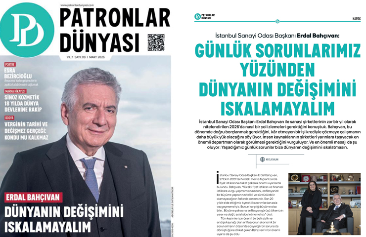 İstanbul Sanayi Odası Başkanı Erdal Bahçıvan, Türkiye ve dünyadaki gelişmeleri, sanayinin durumunu Patronlar Dünyası dergisinin mart sayısında değerlendirdi. Bahçıvan, Patronlar Dünyası Dergisi’ne zor bir yıl olacağı söylenen 2026’da sanayi işletmelerinin ayakta kalabilmesi için neler yapmaları gerektiğine dair değerlendirmelerde bulundu. Bu dönemde doğru borçlanmak gerektiğini, kar etmeyen bir işi krediyle çözmeye çalışmanın daha büyük yük olacağını söyleyen İSO Başkanı Bahçıvan, insan kaynaklarının şirketleri yarınlara taşıyacak en önemli departman olarak görülmesi gerektiğini vurguladı.