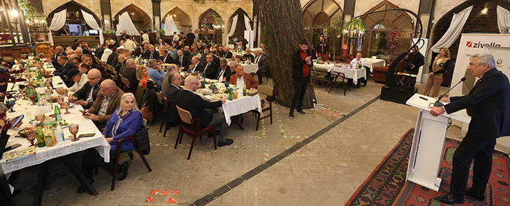 “Ben öncelikle Başkanıma ve yönetim kuruluna çok teşekkür etmek istiyorum. Davet etmek tabii ki kıymetli bir şey ama davetimize icabet etmek ve bu davetimizi kabul buyurmaları bizim için çok kıymetliydi. Bu davetimizi ve misafir etme isteğimizi kabul ettikleri için en başta onlara çok teşekkür ediyorum. Ve icabet eden sizlerin burada olmasından dolayı son derece teşekkür etmek istiyorum. Sağ olun, var olun. Bildiğimiz, inandığımız bir şey vardır: ‘Misafir on rızıkla gelir, birini yer, dokuzunu bırakır.’ Onun için buna inanarak, bu şiarla hareket ettiğimiz için sizleri burada misafir etmekten dolayı memnuniyetimi üstüne basa basa ifade etmek istiyorum. 2004 yılından beri bu ülkede ticaretle meşgulüz. 21 yıl çok ciddi bir zaman. Bir ülkenin yeniden ayağa kalktığı, şahlandığı, büyüdüğü, kendini ortaya koyduğu bir sürece eşlik ettik. Buna bizzat şahitlik ederek, gözlemleyerek yaşadığımız bir süreçti. Bu süreci yaşamak bana şunu da hissettirmişti: 1920’lerde, 23’lerde, Türkiye Cumhuriyeti’nin kuruluş dönemlerine şahitlik edebilmenin ne kadar kıymetli olduğunu, buna bugün Azerbaycan gibi bir ülkede şahitlik edebilmek çok kıymetliydi.”