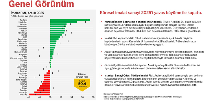 İstanbul Sanayi Odası (İSO), Dünyadaki İmalat PMI Gelişmeleri ile İlgili Aralık 2025 Raporunu Yayımladı