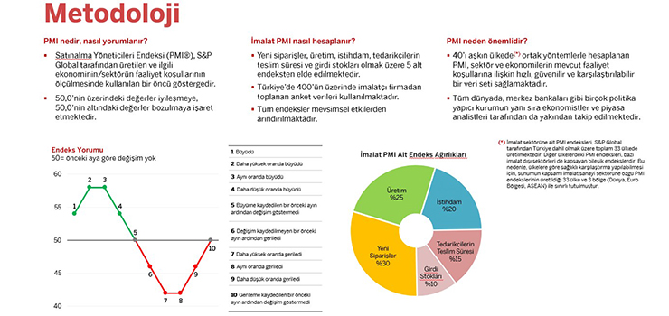 İstanbul Sanayi Odası (İSO), Dünya İmalat PMI aralık ayı gelişmeleri yayımlandı. Buna göre Küresel İmalat Satınalma Yöneticileri Endeksi® (PMI), aralık ayında, 0,1 puan düşüşle 50,4'e geriledi. Endeks, son 5 aydır büyüme bölgesinde olsa da küresel imalat sektörünün yılı zayıf bir büyümeyle kapattığına işaret etti. Aralıkta imalat sanayi üretimi ivme kaybına rağmen artmaya devam ederken, istihdam ve yeni siparişler kasım ayına göre değişim göstermedi. Yeni siparişlerin durağan seyretmesinde küresel ticaretteki zayıflık nedeniyle ihracatın düşmesi etkili oldu.