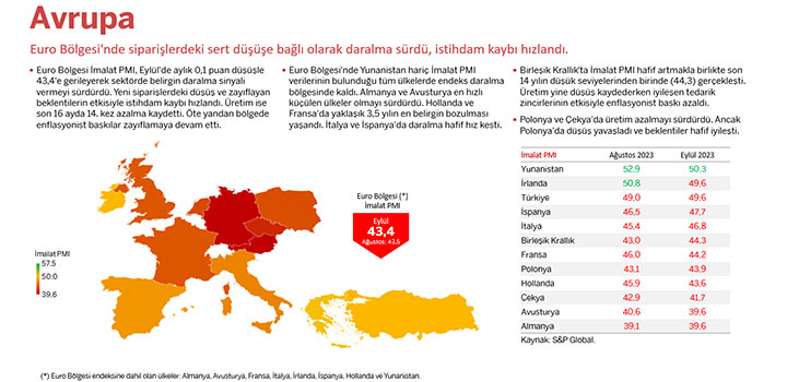 Eylül ayında İmalat PMI endekslerinin açıklandığı 31 ulusal ekonomiden 23`ünde endeks 50,0 eşik değerinin altında kaldı ve bu sayı bir önceki ay 20 idi.