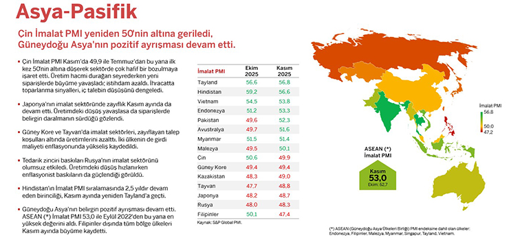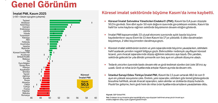 İstanbul Sanayi Odası (İSO), Dünyadaki İmalat PMI Gelişmeleri ile İlgili Kasım 2025 Raporunu Yayımladı