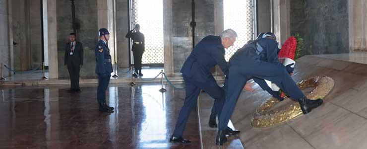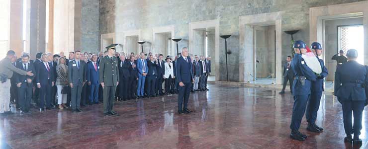 İSO Yönetim Kurulu Başkanı Erdal Bahçıvan ve İSO Meclis Başkanı Ender Yılmaz başkanlığındaki İSO Meclis Üyeleri seyahatin ilk gününe, Anıtkabir ziyareti ile başlandı. İSO Meclis Üyesi sanayicilerin yoğun bir katılım gösterdiği ziyarette, İSO Yönetim Kurulu Başkanı Bahçıvan Atatürk’ün mozolesine bir çelenk bıraktı. İSO Meclis Üyelerinin saygı duruşu ile devam eden ziyaretin ardından Bahçıvan Anıtkabir Anı Defterine duygularını yazdı.
