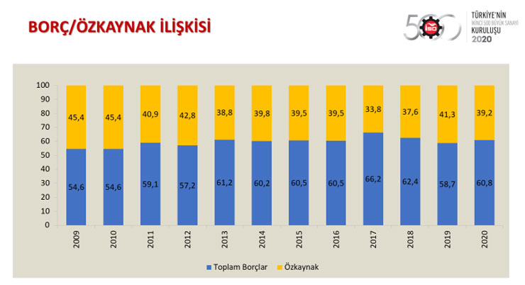 Borrowing and financial borrowing appear to accelerate significantly in ICI Second Top 500 in 2020. It is understood that the low-interest and medium-term loan support packages that were implemented in the post-pandemic period have encouraged borrowing. While financial liabilities rose by 36.1 percent in the same year, the increase in short-term financial liabilities was 30.3 percent, and the increase in long - term financial liabilities was 41.1 percent, more than in previous years.